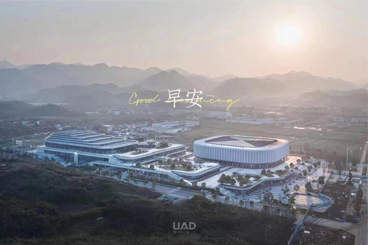 本项目构思源起于临安的山水意向,运用大写意的水墨笔法,勾勒出层层晕染的山水意境。结合场地内低丘缓坡的地貌特征,将体育中心设计成了随等高线层层升高的独特形态,与周边的山体在整体的城市层面上取得良好的呼应关系,如同一条绿脉,将南北的自然山体紧密相连。通过与地貌结合的层层台地,建筑能够与城市自然衔接,创造了多个标高的活动平台,极大提高了场所的可达性与参与性。