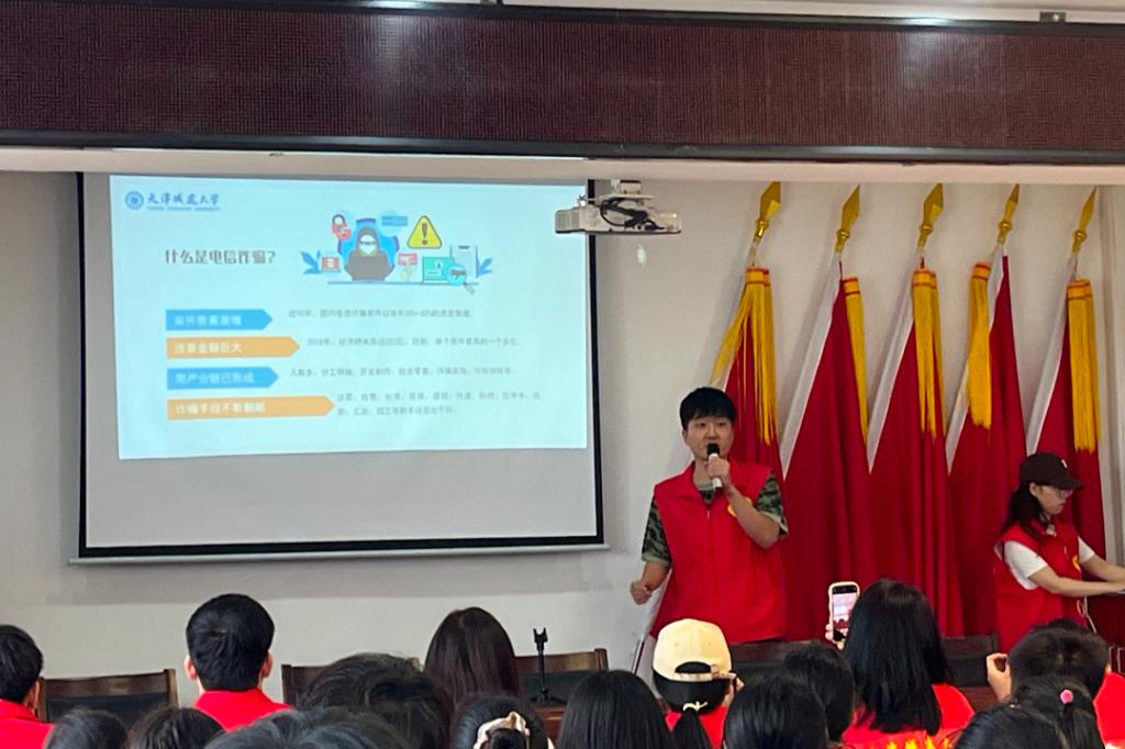 实践队员们在小孙庄村村委会,面向村民和学生开展电信诈骗、防震救灾以及普法宣讲,现场为群众进行讲解电信诈骗的常用手段与危害,以及发生地震时如何紧急避险和疏散等,并针对相关问题开展了互动交流,有效提升了村民安全防范意识,真正掌握防范诈骗、减灾安全逃生的相关知识。