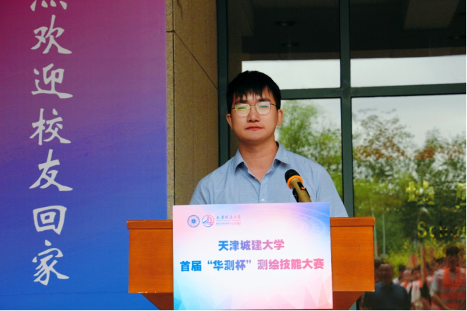 首届“华测杯”天城大测绘技能大赛在资测楼前广场开幕,上海华测导航技术有限公司天津子公司高校行业经理王闯,地质与测绘学院院长汪东川、副院长王志恒,测绘工程系主任、大赛组委会成员窦理波及参赛学生参加。开幕式由院党委副书记向瑛主持。