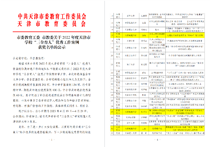 一是坚持多学科交叉研究,推动产出一批新的研究成果。突出齐抓共管、多措并举,紧扣革命文物和红色文化遗产保护的核心问题申报天津市哲学社会科学成果奖1项、天津市教委社科重大项目1项,天津市艺术科学项目1项;对接国家、地方发展战略,通过城市更新、乡村振兴中红色文化遗产保护课题研究,形成《红色基因镌入城市肌理 红色文化浸润学生心田——Beat365唯一官方网站坚持不懈实施“红色资源保护利用”经验案例》;深化课程思政与思政课程建设,经市委教育工委、市教委推荐,申报教育部2024年度高校思想政治工作质量提升综合改革与精品建设项目5项,申报天津市科普基地1项,申报天津市高校课程思政示范课程、天津市级课程思政优秀教学案例各1项,获批市劳动教育优秀课程1项;获批天津市大中小课程思政一体化研究中心课题1项。