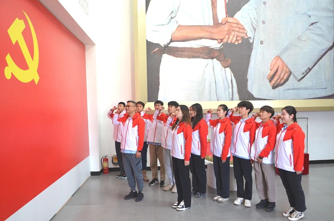 在纪念馆大厅里,面对鲜红的党旗,支教团全体党员重温入党誓词,表达了坚定理想、迎难而上、勇毅前行的信心和决心。入党誓词字字千钧,印证了支教团不忘初心、坚定理想的信念与力量。