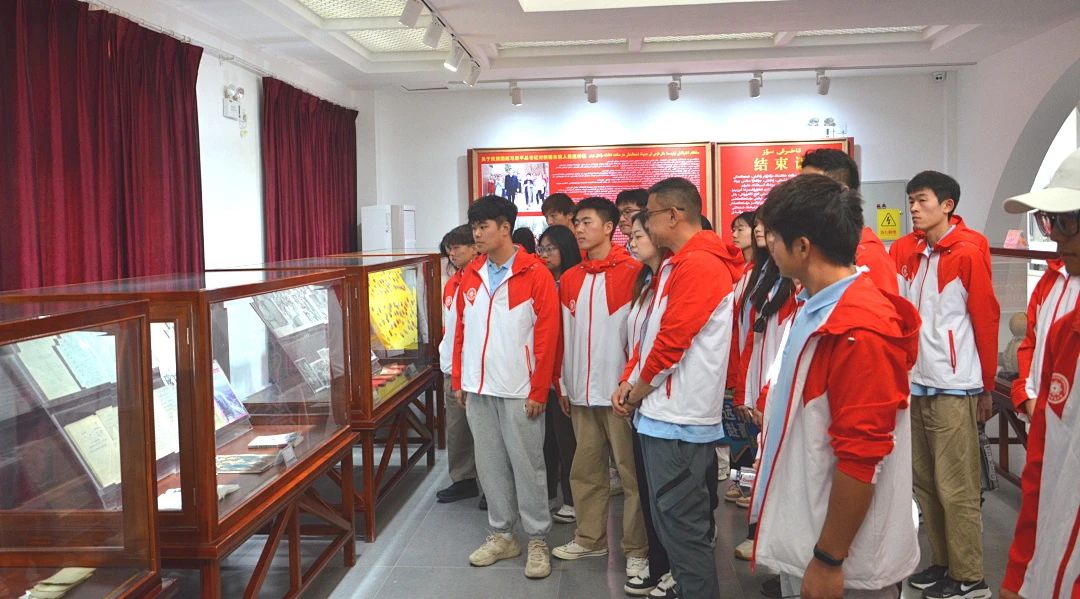 参观过程中,支教团成员们在展馆2楼观看了库尔班·吐鲁木纪录片,并被一幕幕感人至深的画面所触动。观看纪录片过后,成员们一起精读了习近平总书记在2017年1月给库尔班·吐鲁木的长女托乎提汗·库尔班写的回信,大家在深深感受到了习近平总书记对群众的关心关爱后,纷纷表示,要牢记习近平总书记“要以铸牢中华民族共同体意识为主线,不断巩固各民族大团结”的嘱托,担当历史使命,用实际行动践行青春誓言。