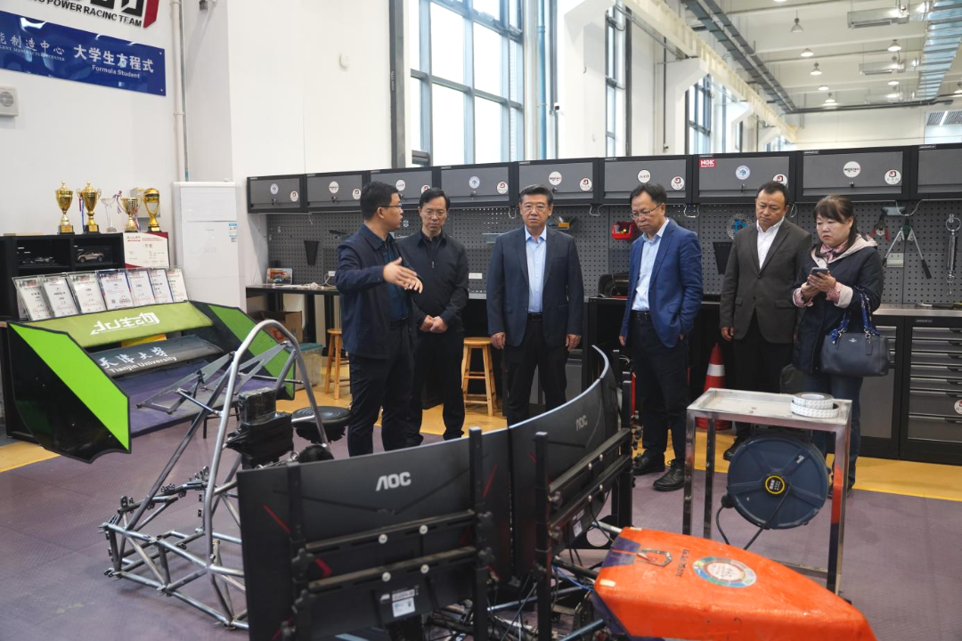调研期间,在马新宾的陪同下,调研组参观了天津大学智能制造中心,了解了天津大学在新工科建设历程中践行的“天大行动”“天大方案”,学习了该中心开设的《设计与制造Ⅰ》《设计与制造Ⅱ》《设计与制造Ⅲ》《设计与制造Ⅳ》等系列创新课程,体验了天大学生打开教室围墙、打破学科藩篱、开放性的学习环境,扫码学习了一些设计课程的教学视频和讲解过程,收获颇丰。