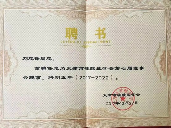 曾被聘为天津市硅酸盐学会理事