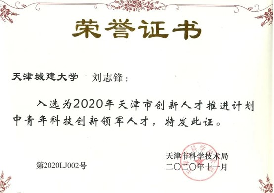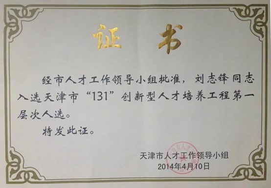 获“天津市创新人才推进计划中青年科技创新领军人才”