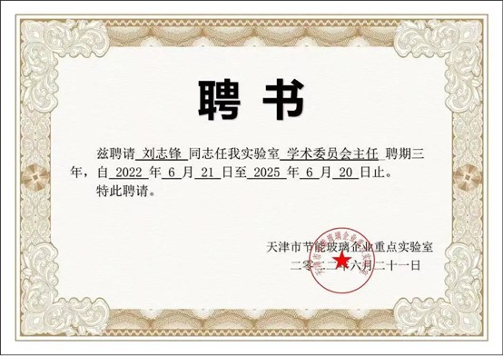 被聘为天津市节能玻璃企业重点实验室学术委员会主任