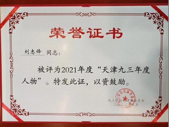 获“天津市九三年度人物”荣誉称号