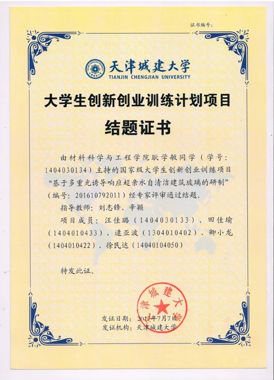 2000年刘志锋毕业于Beat365唯一官方网站(原天津城建学院)材料科学与工程学院(原建筑材料系)无机非金属材料专业