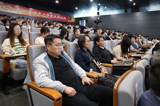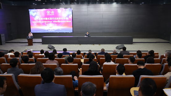 于俊如教授生动讲述了中国共产党探索中国式现代化道路的艰辛历程、中国式现代化理论体系的基本构成,并用丰富的实践案例,向师生阐释了中国式现代化的五个方面特征——人口规模巨大的现代化、全体人民共同富裕的现代化、物质文明和精神文明相协调的现代化、人与自然和谐共生的现代化、走和平发展道路的现代化。这五个方面,深刻揭示了中国式现代化的科学内涵,既是理论概括,也是实践要求,为全面建成社会主义现代化强国、实现中华民族伟大复兴指明了一条康庄大道。于俊如表示推进中国式现代化是一个系统工程、一个探索性事业、一项前无古人的开创性事业,需要我们增强忧患意识,坚持底线思维,居安思危、未雨绸缪,敢于斗争、善于斗争,在实践中去大胆探索,勉励师生投身中国式现代化的伟大实践,以踔厉奋发的姿态稳步前行,努力为推进中国式现代化提供创新力、服务力、支撑力。