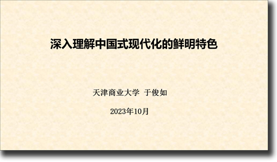 于俊如教授在宣讲中表示,中国式现代化有其深厚的历史渊源,不断探索和推进中国式现代化,是中国共产党一百多年来长期奋斗的理想与目标。中国式现代化理论是习近平新时代中国特色社会主义思想的重要组成部分,中国式现代化的中国特色是全面建设社会主义现代化国家的鲜亮底色。