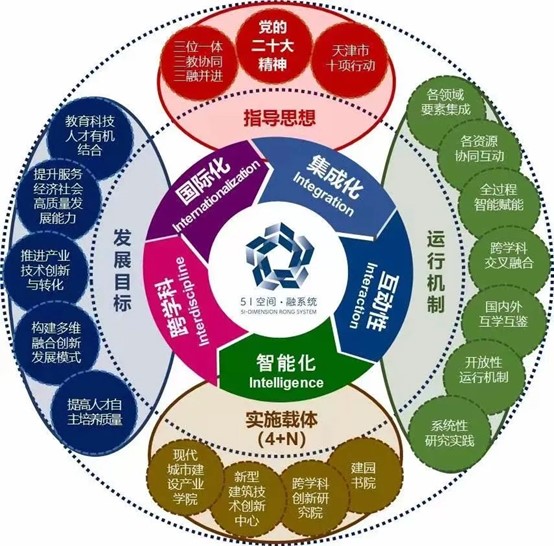 “5I空间·融系统”兼容集成化(Integration)、互动性(Interaction)、智能化(Intelligence)、跨学科(Interdiscipline)、国际化(Internationalization)五个维度,旨在以系统观念构建“融系统”,以高质量发展要求打造“5I空间”,构建教育要素、产业要素、创新要素开放重组、互动融合的生态系统,是为深化产教融合、科教融汇,促进教育科技人才高质量融合发展、提升服务经济社会高质量发展能力而打造的多维融合创新发展模式。