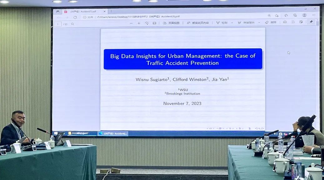 华盛顿州立大学经济学院严佳教授以《Big Data Insights for Urban Management:the Case of Traffic Accident Prevention》为题,从大数据为城市管理体系提供的更加全方位的数据信息出发,创造性地提出传统交通事故分析模型结果存在同质化的问题,并通过大数据手段将当地收入水平、地价、交通事故、犯罪信息等要素纳入计量模型,得出增加警察巡逻次数可有效减少交通事故的结论。
