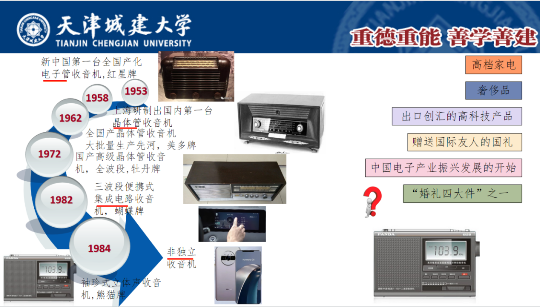 本部分课程主要讲解了RLC串联电路谐振的定义、条件和特点。课程首先从一个谜语引入,然后通过对“收音机”这一谜底的“如何进行频道选择”的原理的探究,引出RLC串联电路谐振的定义,进而全面展开课程。在课程讲授过程中,简要回顾了收音机的发展史,介绍了新中国电子产业前辈们在新中国成立初期电子工业基础薄弱的条件下,自立自强、坚持不懈的奋斗历程,极大地激发起学生们的爱国热情与民族自豪感,并让他们深切认识到自己身为中国电子产业后备军的历史使命。陈建伟老师的课程讲授幽默生动、富有吸引力,课程思政内容融入自然、巧妙,获得了专家评委及教师们的一致好评。