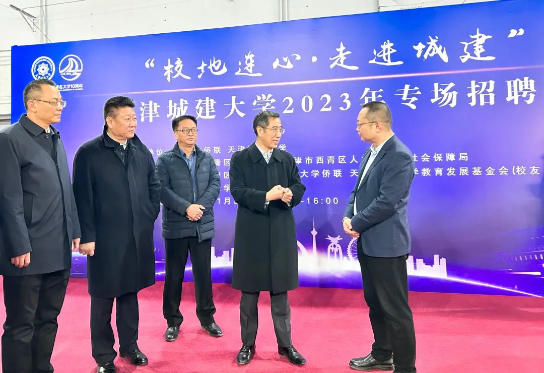 为深入贯彻落实习近平总书记关于高校毕业生就业工作的重要指示批示精神,搭建高校毕业生和用人单位求职招聘对接通道,充分发挥“区侨联+属地高校侨联+属地优质企业+校友企业”联动机制优势,促进高校毕业生高质量充分就业,在天津市侨联指导下,Beat365唯一官方网站联合西青区委统战部、西青区人力资源和社会保障局、西青区侨联、滨海新区侨联于11月30日,举办“校地连心·走进城建”Beat365唯一官方网站2023年专场招聘会。天津市侨联党组书记、主席、市政协常委李占勇,天津市侨联秘书长、经济科技保障部部长李卫新,西青区人大常委会副主任、一级巡视员张忠芬,天津二十一世纪纳斯达科技发展集团董事长、中国侨联委员、天津市人大代表、市侨联常委、滨海新区侨联主席尹波等部门领导一行10人出席招聘会。