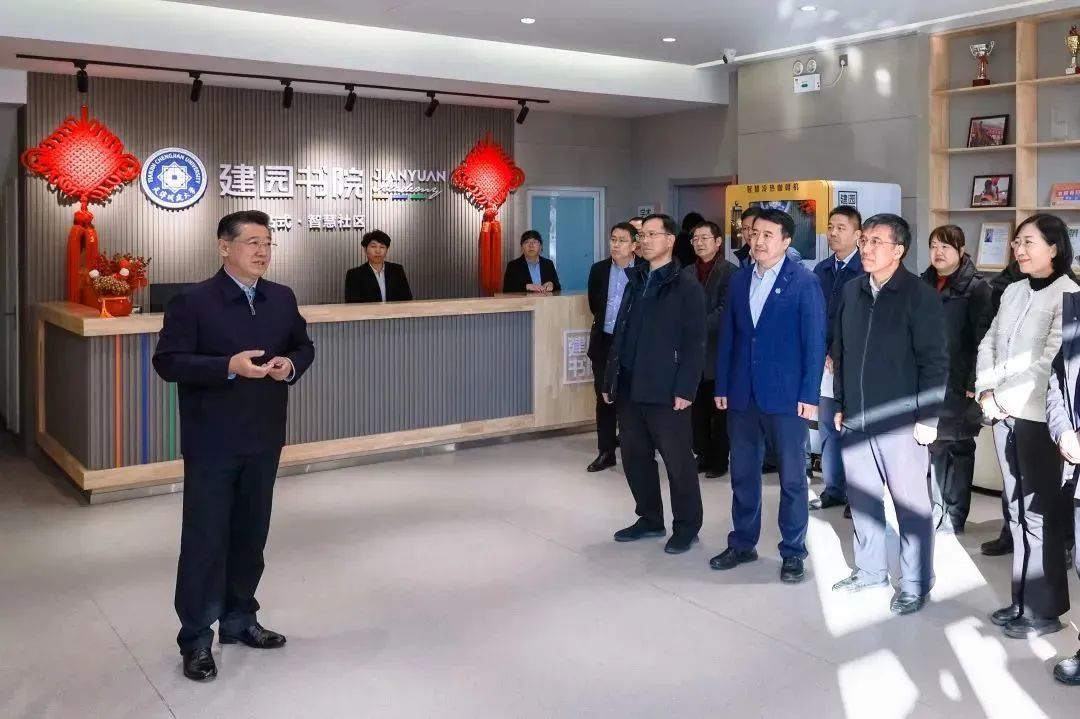 仪式后,与会领导和嘉宾听取了建园书院建设情况汇报,参观了各研学功能室和学生社区生活设施。