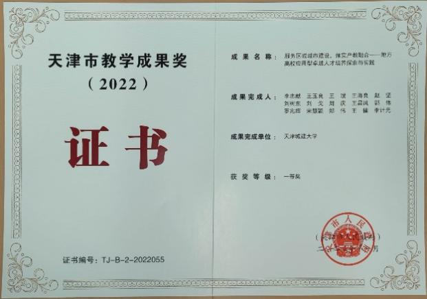 主持包括天津市普通高等学校本科教学质量与教学改革研究计划项目、教育部产学合作协同育人项目等9项教改项目,并参与教育部新工科研究与实践项目、天津市教研项目等项目5项,发表教研论文10篇,以第一完成人和主要完成人获天津市级教学成果一等奖2项,获得天津市高等学校教学名师奖。