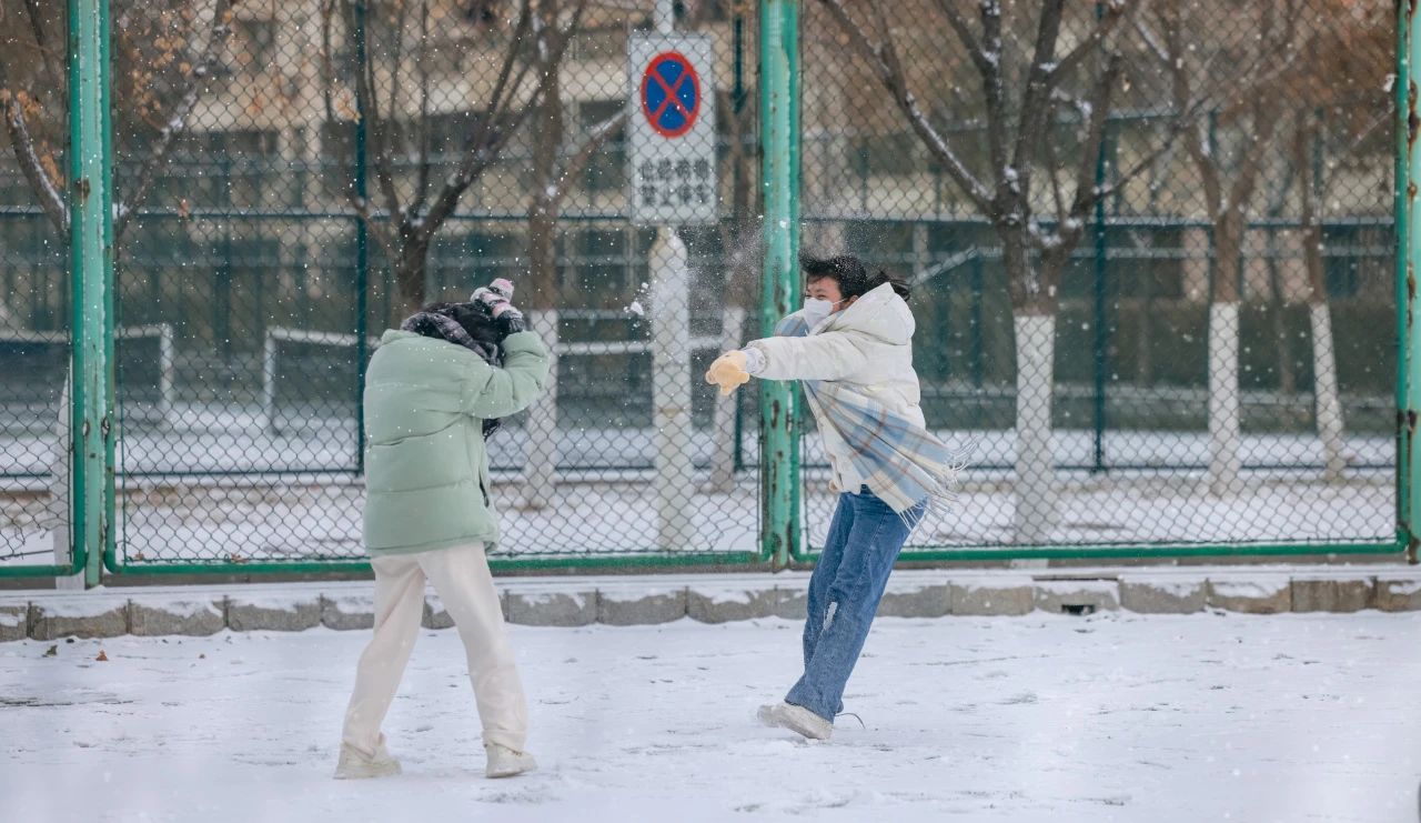 打雪仗、堆雪人,玩得不亦乐乎