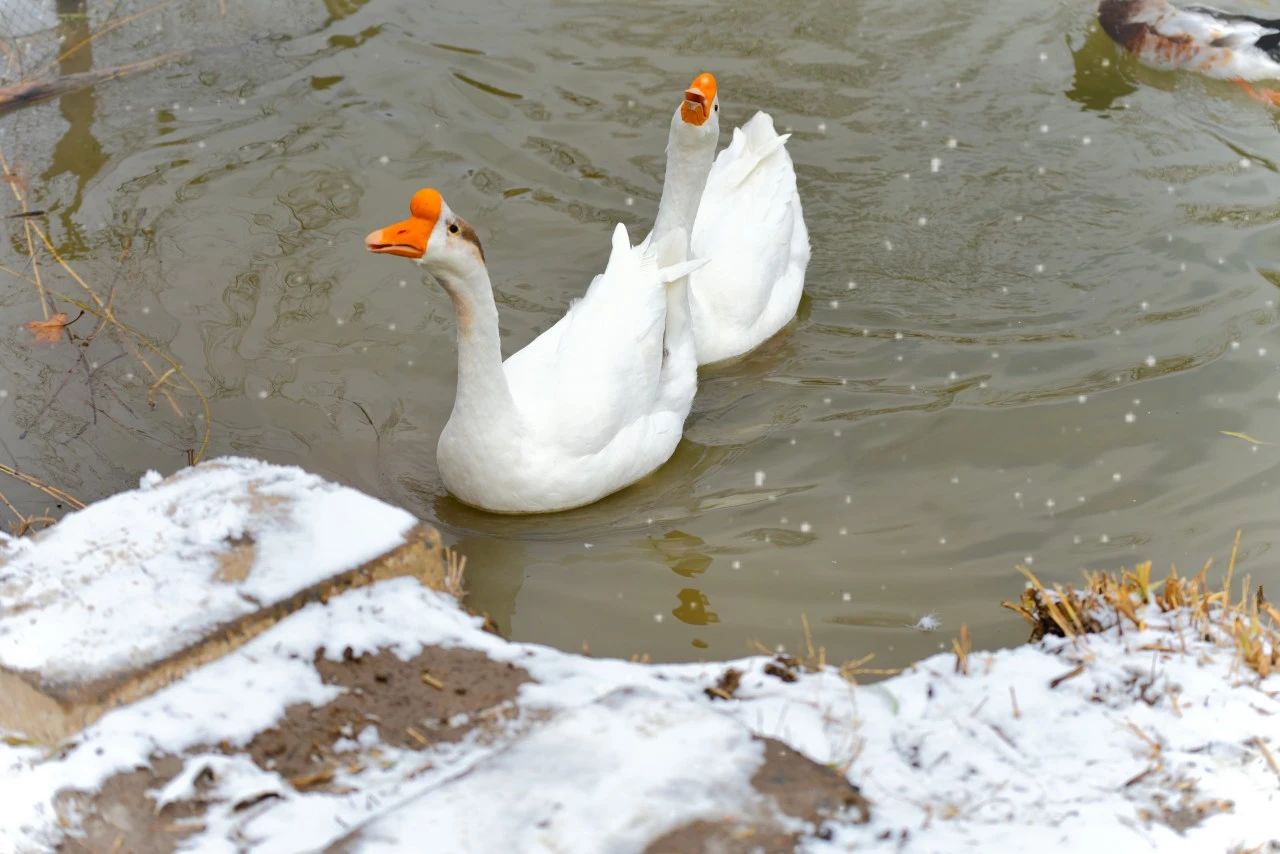 星星点点的雪落在鸭鹅水兽身上