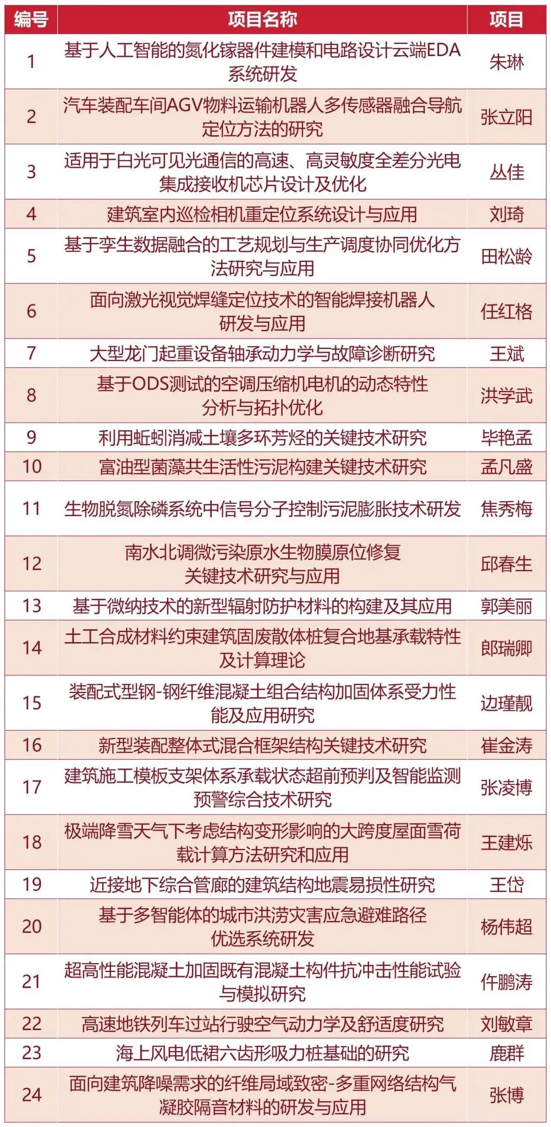 立项项目一览表