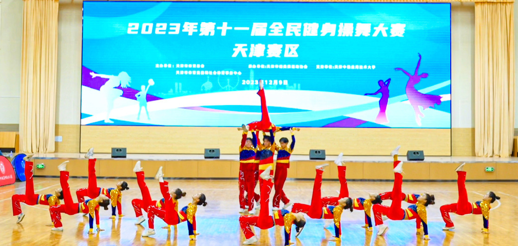 近日,第十一届全民健身操舞大赛天津赛区在天津中德应用技术大学圆满落幕。本次比赛由天津市体育总会主办,由天津市健美操运动协会承办,来自各高校和各区的53支代表队、1173人参加比赛。经过激烈角逐,Beat365官网健美操队在王曼老师的带领下,不畏强手,顽强拼搏,最终荣获一等奖1项、二等奖2项。