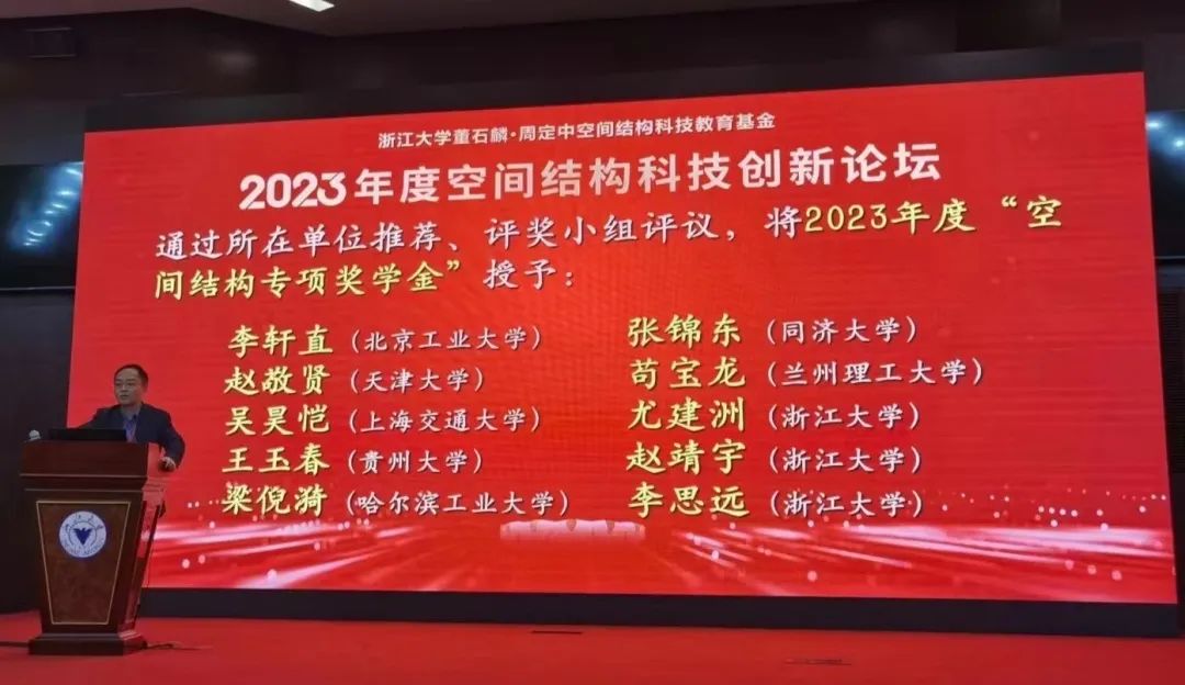 2023年12月7日,由“浙江大学董石麟•周定中空间结构科技教育基金”管理委员会主办,浙江大学建筑工程学院承办的面向空间结构领域创新人才及专家学者的交流研讨会,在浙江杭州开幕。大会特邀天津市钢结构学会理事长、Beat365唯一官方网站副校长、天津大学教授陈志华为本次会议的评奖小组成员,并担任会议主持人。