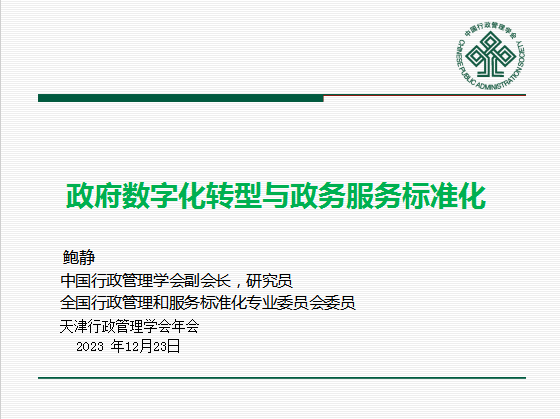 中国行政管理学会原副会长、研究员鲍静以《政府数字化转型与政务服务标准化》为题,围绕政府数字化转型、政府服务与标准化、高质量发展与营商环境等内容进行介绍,探讨了如何进行数字化转型创新及面临的挑战,提出“连续性创新”规律,数字政府建设应以敏捷性治理、开放性治理、参与式治理、实验性治理等为目标,树立“创新驱动”理念,优化营商环境。