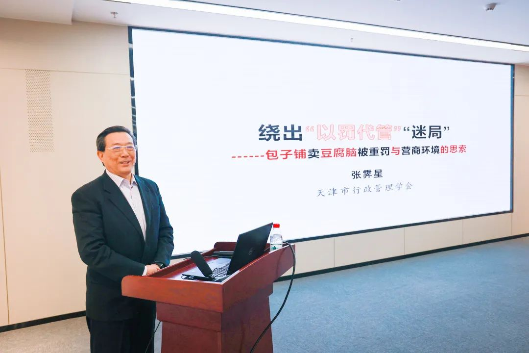 天津市行政管理学会常务副会长兼秘书长、研究员张霁星以《绕出“以罚代管”“迷局”——包子铺卖豆腐脑被重罚与营商环境的思索》为题,以包子铺卖豆腐脑被重罚为案例对营商环境建设进行思考,探讨政府市场监管的目的,指出应绕出“以罚代管”迷局,变管理为服务,助力营商环境持续优化。