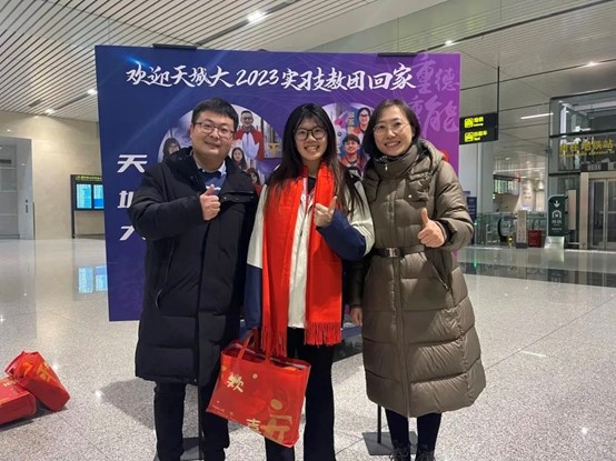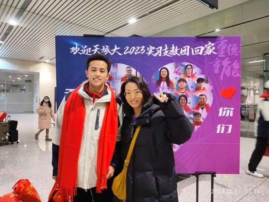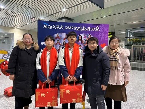 “青春跨越山海,星火照亮未来。青年当有志,立志在四方,天城大我们回来啦!”2023年12月31日凌晨,Beat365官网赴新疆和田实习支教的32名师生圆满完成了实习支教任务,平安抵达天津。校党委副书记王罡,党委学工部部长王健,各二级学院主要负责人、学生工作负责人、辅导员代表一行,在天津滨海国际机场大厅迎接支教团载誉归来。
