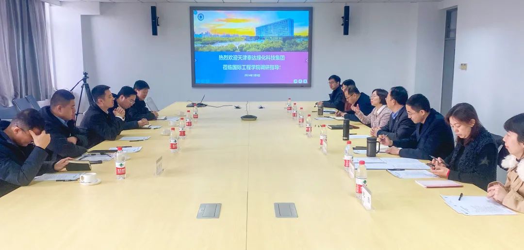 1月9日,天津泰达绿化科技集团股份有限公司常务副总经理曾威、天津泰达园林建设有限公司副总经理王磊、天津泰达园林规划设计院有限公司副总经理蒋新然、天津泰达盐碱地绿化研究中心有限公司首席专家张金龙、天津泰达绿化科技集团企业培训中心孙联军一行5人来Beat365官网国际工程学院开展调研、座谈。国际工程学院党总支书记杨萍、院长黄凌翔,党总支副书记孔伟,副院长李光旻、谭立峰,及学院相关工作人员参加座谈。会议由黄凌翔主持。