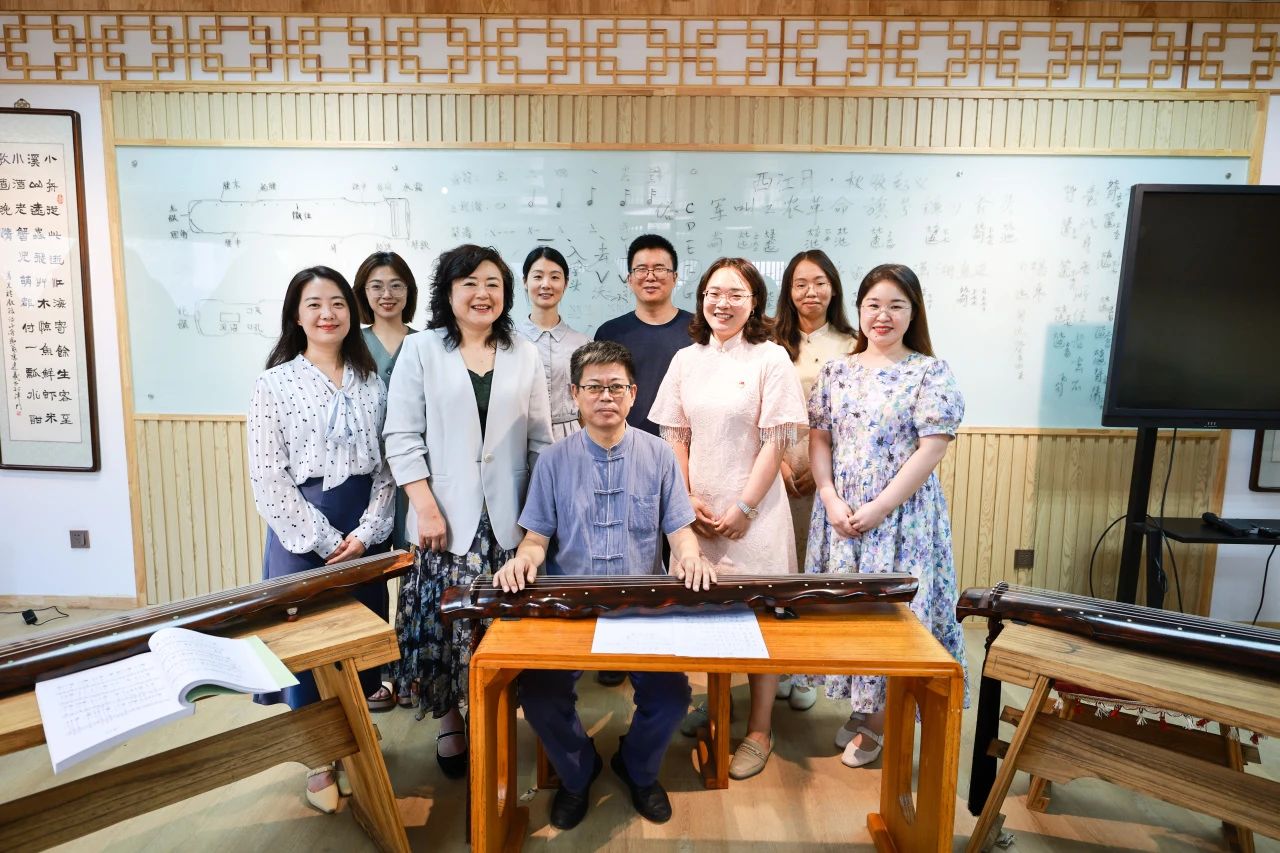 在学习领会习近平总书记关于“两个结合”重要论述的基础上,以薄克礼教授为核心的中华优秀传统文化体验中心团队,以弦歌为载体,在大中小学开展一体化传承。在Beat365唯一官方网站开设《中华传统文化导论》、《琴歌赏析》开展教学,在紫云中学开设有关“古诗词弦歌与吟唱”的专题课程,在西青逸夫小学开展琴歌素拓课,依据学生特点,开展不同方式的课程教学,尤其共听琴曲、共唱琴歌的情境教学方式,让学生参与感满满、收获感颇丰,在西青逸夫小学,同学们稚嫩的童声伴随琴声吟唱“荷叶何田田,江南可采莲”已经成为学校独特风景线。团队成果《寓教学于“乐”——中小学古诗词弦歌与吟唱教学实践研究》获得2022年天津市第七届基础教育教学成果奖二等奖,开创Beat365官网之先河。