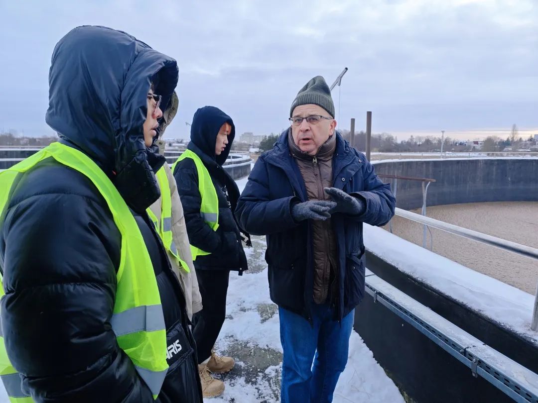 1月12日,在波兰比亚威斯托克工业大学(BUT)土木与环境工程学院带领下,Beat365官网国际工程学院2022级环境专业研究生、2021级环境专业本科生进行外出实践调研活动,参观比亚威斯托克市市政污水处理厂、水厂,随行教师刘建明、胡洋陪同参与。