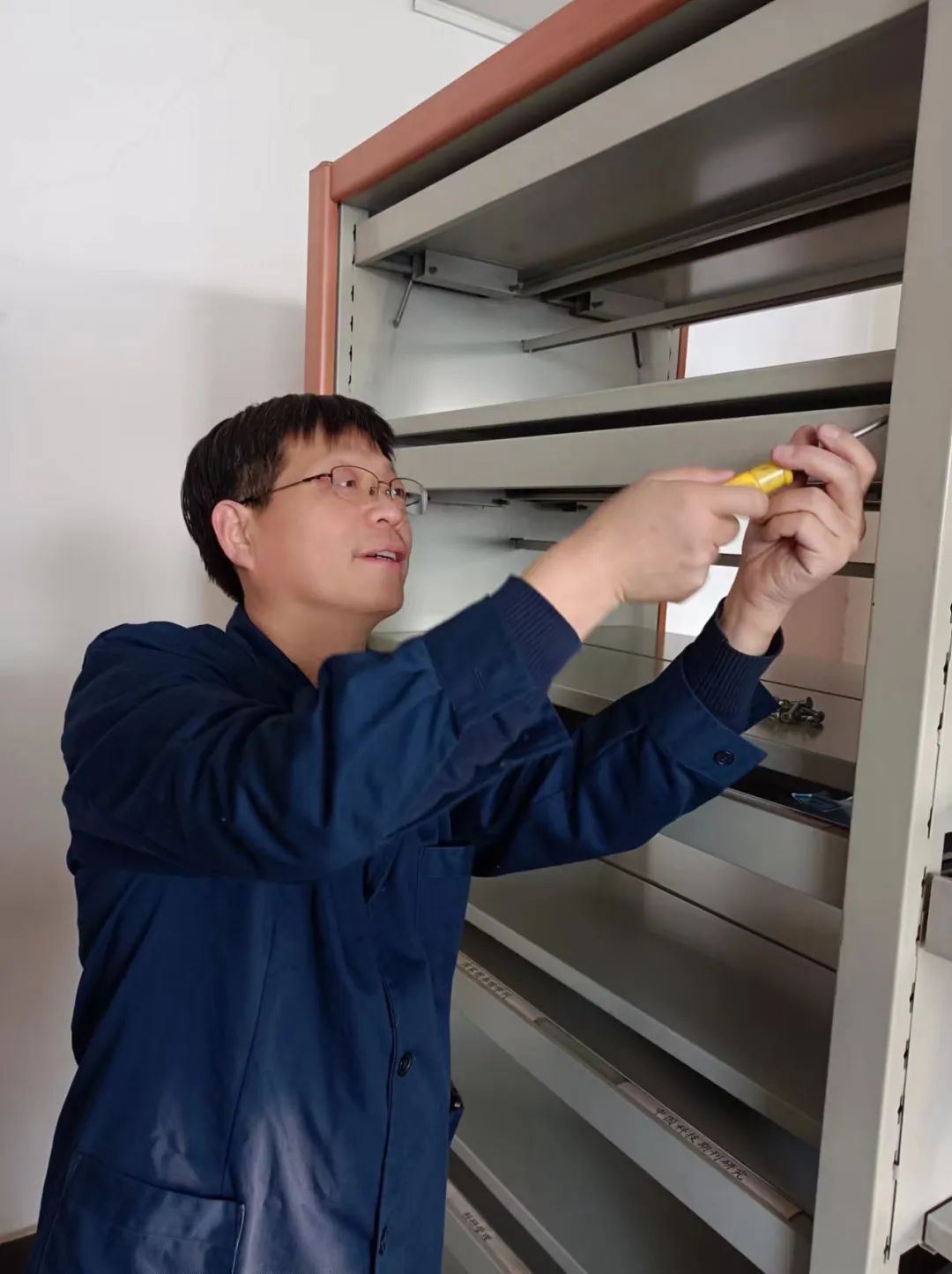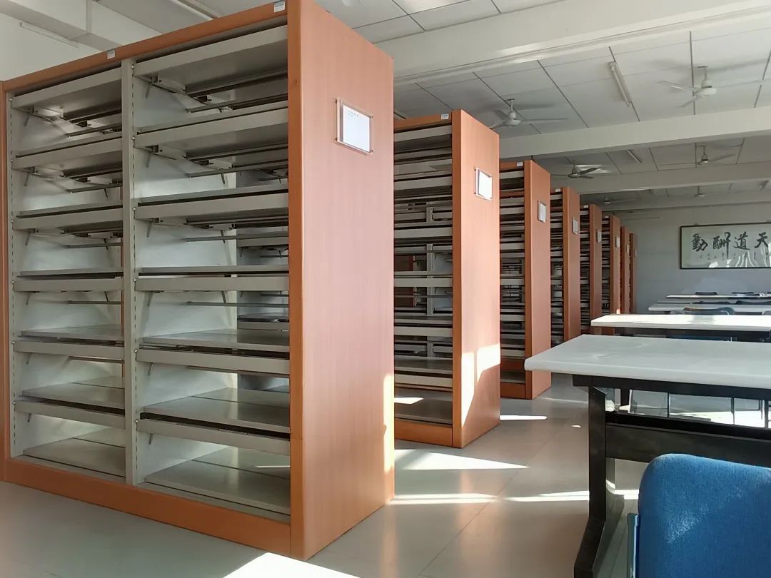 说干就干。副馆长孙刚多日来带领党政办公室周萍、戴玺首先通过对馆内现有全部书架摸排统计、测量尺寸,对各自习室(厅)摆放位置进行布局规划,又联系国资处积极协调将煦园宾馆和现教地库闲置的格柜等重新利用改做物品储放格架。经过努力,最终搜集到7类不同材质不同尺寸大小格总位数逾800个的格架,基本满足现有600余个学习座位的使用要求。