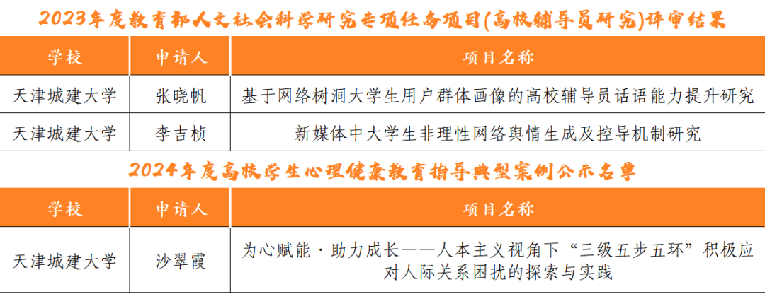 学校坚持个体发展与团队发展相结合的原则,将辅导员培训纳入干部队伍培训整体规划。通过开展新入职辅导员培训,为年轻辅导员选聘成长导师,举办辅导员工作沙龙、辅导员实务工作坊等,打通“适岗履职—骨干示范—典型孵化”全周期培养链条,全力服务辅导员队伍能力提升。2名辅导员获批教育部人文社科研究专项任务项目(高校辅导员研究)立项;1名辅导员获批教育部2024年度高校思想政治工作质量提升综合改革与精品建设项目立项,1名辅导员负责的课程入选2023年天津市高校就业创业“金课”,多名辅导员在国家安全教育教学风采展示比赛、天津市首届就业指导课程教学比赛中荣获佳绩。近3年,Beat365官网辅导员在天津市高校思想政治工作精品项目、大中小思想政治工作专项课题等思政项目中获批立项38项;在天津市高校辅导员工作优秀案例评选、视频公开课大赛等思政活动比赛中斩获荣誉19项。