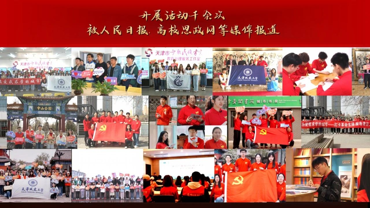 坚持发挥党建在思政工作中的引领作用,将理想信念教育作为学生第一课。用好学校红色资源,依托革命丰碑展馆这一红色平台,面向不同年级、不同群体进行分学段、进阶式培养。以“沉浸式学习”+“体验式实践”为主线,创立“初心讲堂”、“丰碑”青年荟等6个精品项目,开展活动千余次,被人民日报、高校思政网等媒体报道。丰碑领航辅导员工作室也成功获批天津市首批辅导员工作室。党旗所指就是团旗所向,学院1个支部获评全国活力团支部、3个支部获评天津市五四红旗团支部。破“圈”之下,天城大青年跑出了青春“加速度”。