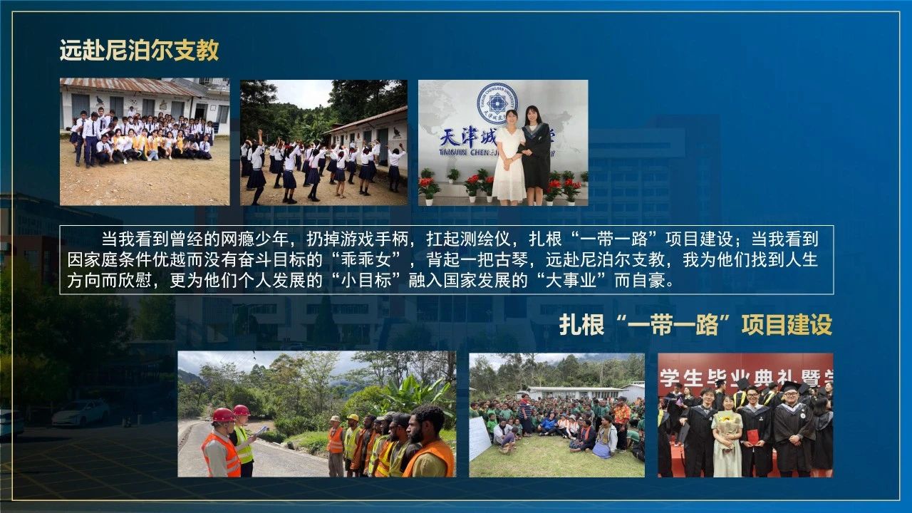 当她看到曾经的网瘾少年,扔掉游戏手柄,扛起测绘仪,扎根“一带一路”项目建设;当她看到因家庭条件优越而没有奋斗目标的乖乖女,背起一把古琴,远赴尼泊尔支教,她为他们找到人生方向而欣慰,更为他们把个人发展的“小目标”融入国家发展的“大事业”而自豪。