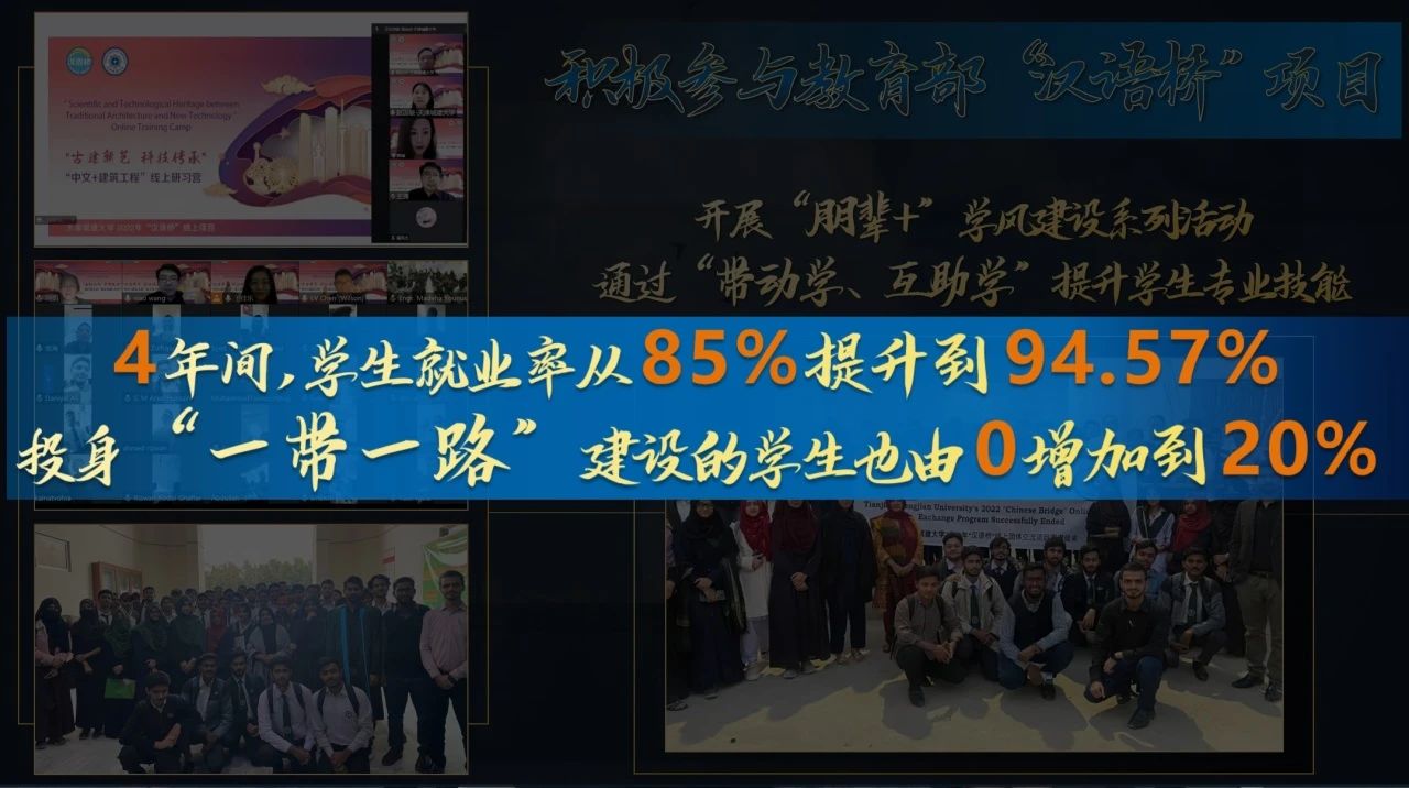 把讲好“一带一路”故事融入学生就业观教育,引导学生用专业所学服务国家发展,是她做好就业工作的初心。组织开展“国教青年论坛”,让中外学生、优秀校友分享他们与“一带一路”的故事,增强学生对“一带一路”的成果认知。积极参与教育部“汉语桥”项目,开展“朋辈+”学风建设系列活动,通过“带动学、互助学”提升学生专业技能。4年间,学生就业率从85%提升到94.57%,投身“一带一路”建设的学生也由0增加到20%。