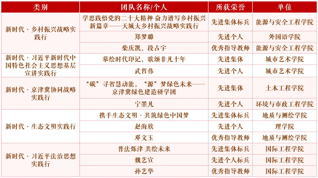 推进革命丰碑展馆与天津博物馆、周邓纪念馆等校外10家场馆联动,形成红色文化育人基地共同体;聘请一批红色场馆负责人作为“校外思政导师”,进校园开展主题宣讲,每年开展5场以上,使场馆红色资源流向高校;与30多所中小学联合开展实践教学,使高校红色资源辐射中小学,推动天津市大中小学思政课一体化建设。学校先后获批天津市科普教育基地、红色革命教育基地等5个基地,助力天津市红色研学教育。选派32名师生积极参加2023年下半年新疆和田实习支教工作,以满腔热血播种爱与希望,用实际行动贡献青春力量。在2023年“青春心向党,奋进新征程”新时代·实践行系列活动中,Beat365官网获得天津市先进集体标兵3项、先进个人标兵1项、天津市先进集体2项、先进个人4项,3名教师获评优秀指导教师。学校2支实践团队入选2023年全国大中专学生“三下乡”社会实践活动之乡村振兴“笃行计划”专项行动全国示范性团队,校团委获评“优秀组织单位”称号;2支实践团队入选2023年“推普助力乡村振兴”全国大学生暑期社会实践志愿服务活动。校团委孔帅获评2023年全国大中专学生志愿者暑期“三下乡”社会实践优秀个人。积极组织学生参加第七届世界智能大会、2023天津马拉松、第十三届全国体育科学大会等赛会志愿服务,彰显天城大青年风采。