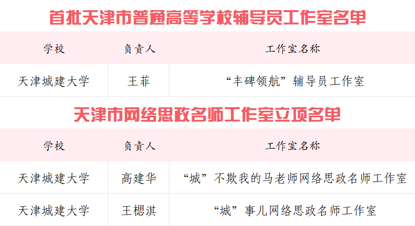 深化大思政内涵建设,思政项目案例培育初见成效,多个项目、案例先后获评全国、全市高校思政工作精品项目、“三全育人”优秀案例。3个项目入选2024年度高校思想政治工作质量提升综合改革与精品建设项目,获批数量位居天津市第一,全国前十。获批2023年度市高校思想政治工作精品项目立项3项,2022年度文化育人项目结项获评优秀。学校以精品项目培育,不断提升学校思政队伍的理论水平和专业素养,提升学校思政工作育人实效。“丰碑领航”辅导员工作室成功入选首批天津市普通高等学校辅导员工作室,“‘城’不欺我的马老师”“‘城’事儿”双双获评成为天津市首批网络思政名师工作室。