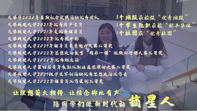 她先后指导学生获天津市“新时代·实践行”先进个人标兵、天津市暑期“三下乡”社会实践优秀团队等多项荣誉,指导学生组织获评校“标兵集体”、校“十佳社团”,所带班级中累计3个班级获评校“优秀班级”荣誉,学生脸上的自信是她最大的欣慰。