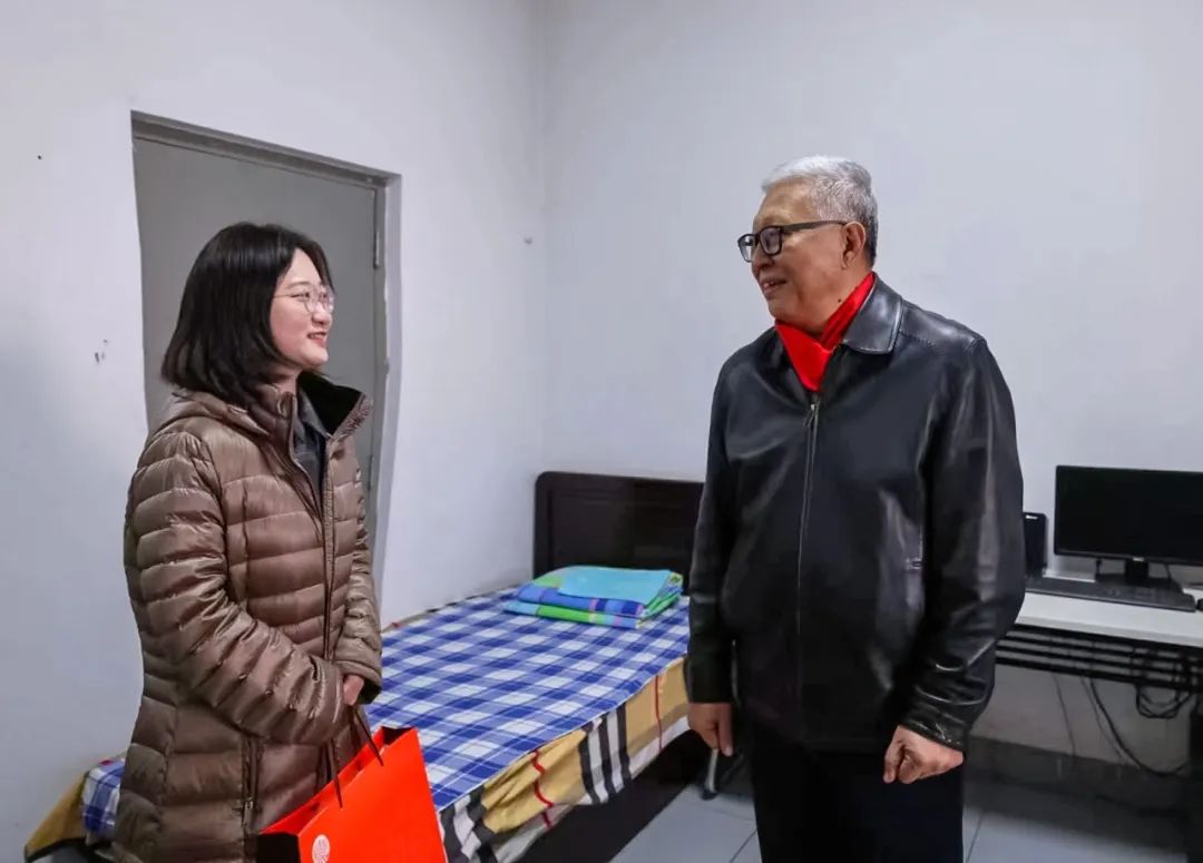 玉兔呈欢辞旧岁,神龙跃起展鸿猷。2月9日农历大年三十,副校长崔雅利带领相关部门负责同志亲切看望慰问春节期间坚守在岗位上的一线员工,代表学校向他们表示衷心的感谢并致以节日问候和诚挚祝福,让大家深切感受到浓浓的“年味”。