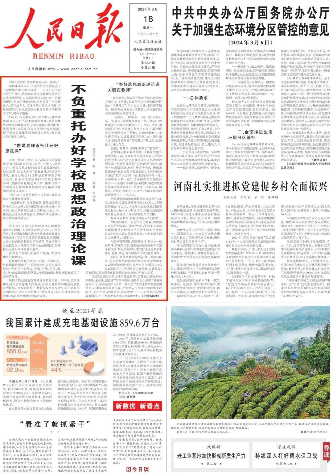 2019年3月18日,习近平总书记主持召开学校思想政治理论课教师座谈会并发表重要讲话。5年来,各地教育部门和学校认真贯彻落实习近平总书记重要讲话精神,聚焦发挥思政课关键课程作用,在机制建设、师资配置、课程设计、资源整合等方面深化改革创新。一起来看《人民日报》报道——