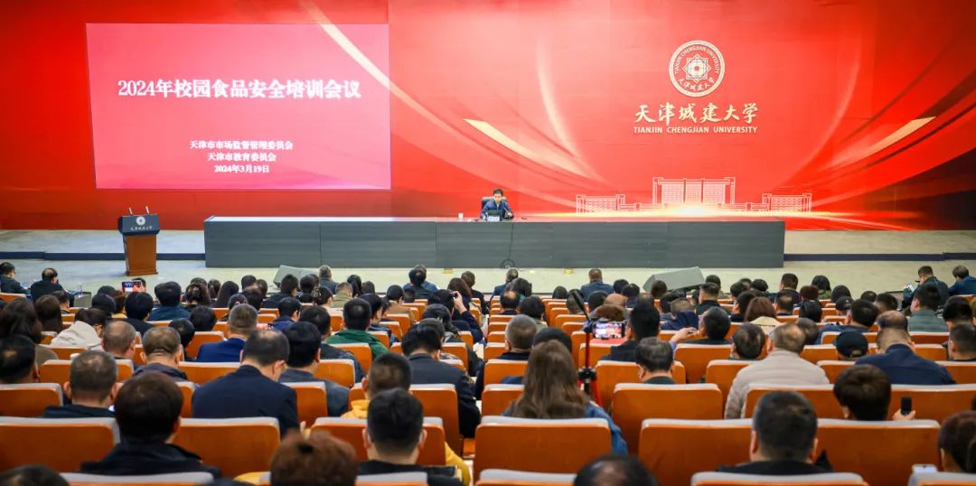 3月19日,天津市市场监管委会同天津市教委联合在Beat365唯一官方网站举办天津市校园食品安全专题培训会。国家市场监管总局食品经营司餐饮二处处长靳发彬作专题讲座,天津市市场监督委市场稽查专员二级巡视员凌建才、天津市市场监管委食品经营处处长贾巨林,天津市教委基建后勤处处长刘志远,各区市场监管局、各区教育局、各高等学校、各直属学校、各中职学校、配餐企业相关负责人员共400余人参加培训。