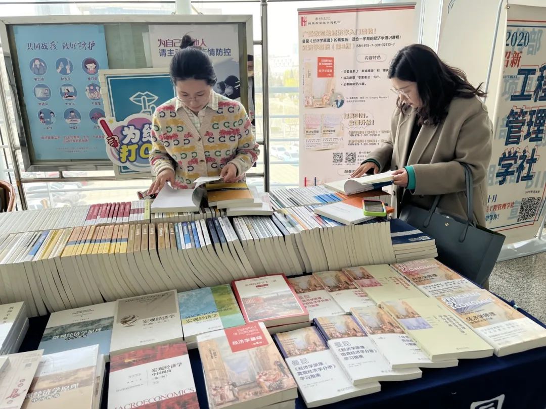 书展上,各类琳琅满目的书籍吸引大量师生们纷纷前来书展现场驻足观看。参展书籍涵盖经济学、管理学、金融学、统计学、市场营销等多个学科领域,既有国内外知名学者的权威著作、前沿研究成果,也有适用于本科生与研究生教学的参考书、案例集,还有各类热销的科普读物与通识教育书籍。