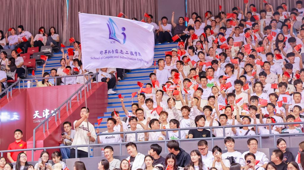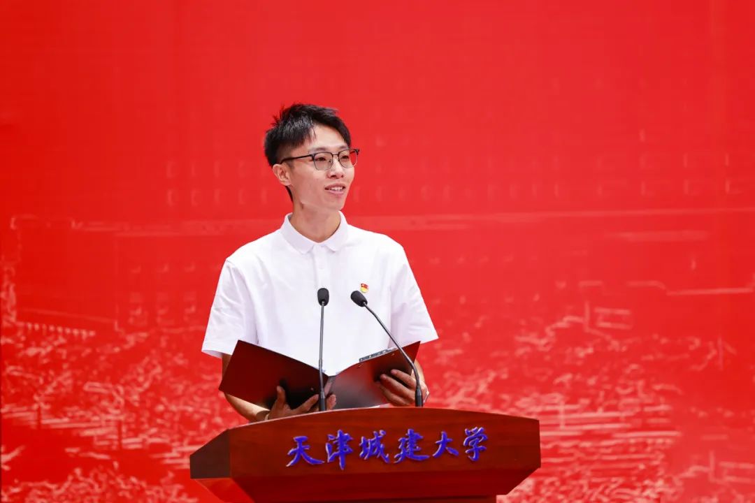 天津市优秀共青团员、天津市“王克昌奖学金”文化科技创新奖、天津市创新创业奖学金获得者、国际工程学院王博远同学作为在校本科生代表进行发言,他用立学、立身、立行三个方面分享了他的天城大故事,鼓励同学们争做眼中有光、勇于开拓、赤诚有爱的天城大青年,在民族复兴的伟大征程中找到自己的青春坐标。