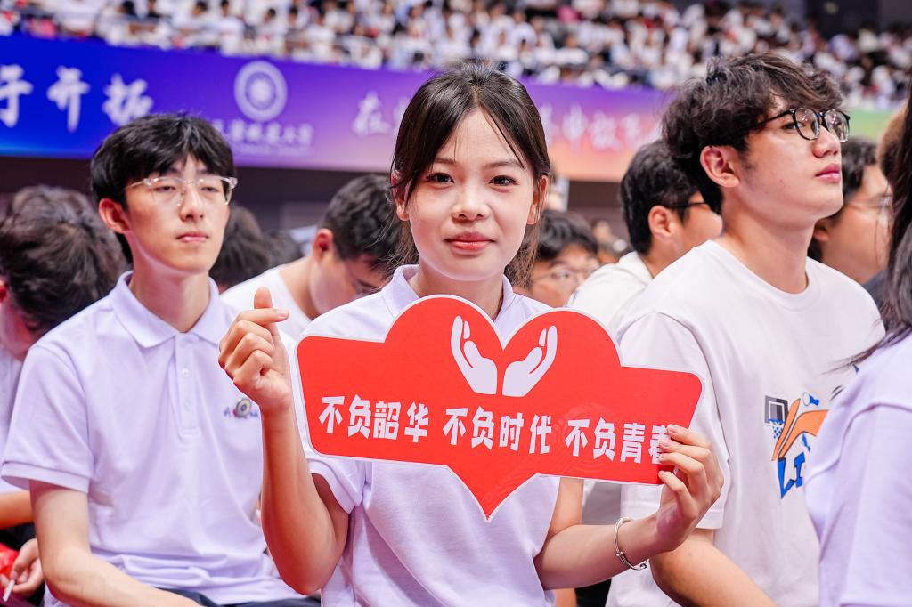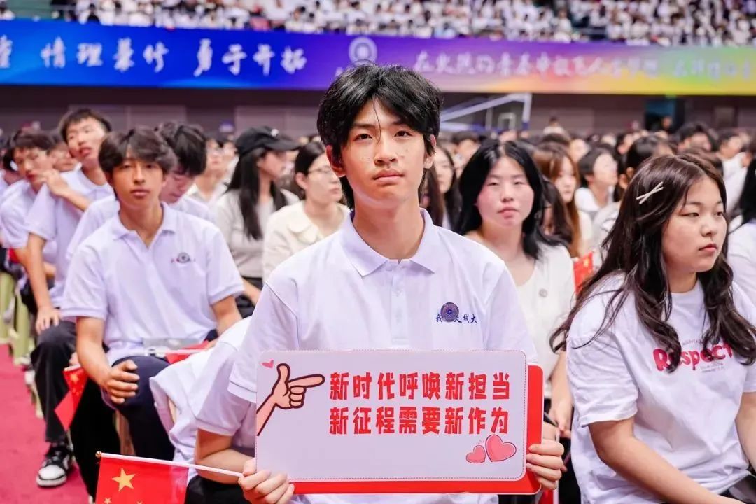 外国语学院2024级本科生李子涵作为新生代表,表达了对学校的感谢和对未来的期许,表示将充分利用学校提供的丰富学习资源和实践机会,以天城大为坐标,以锐意进取的卓越精神自我激励,将青春之我融入中华民族伟大复兴的壮丽篇章。