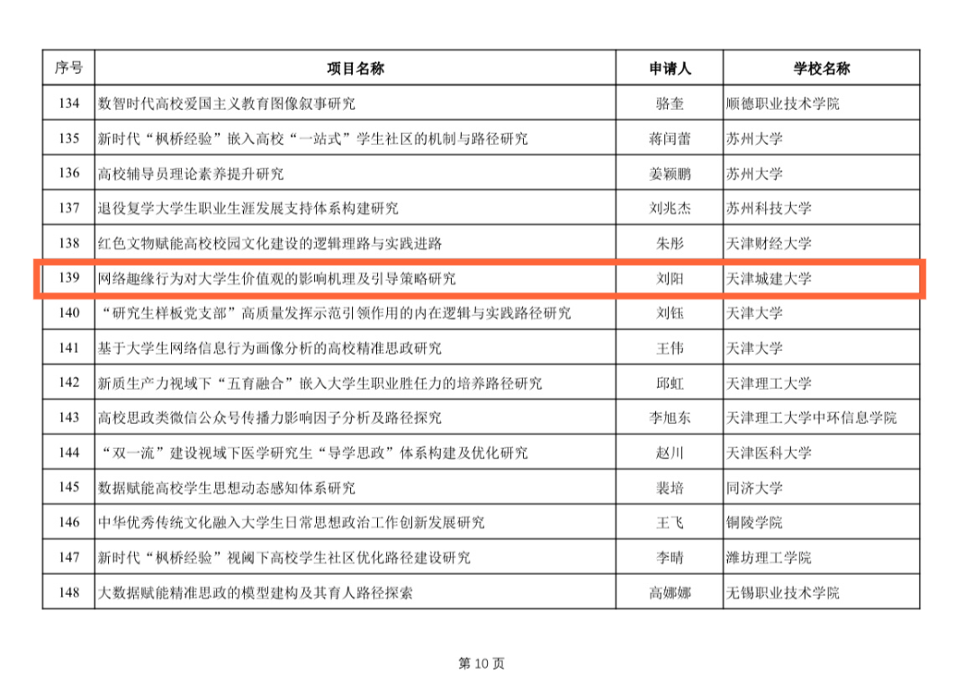 近日,教育部公布了2024年度教育部人文社会科学研究专项任务项目(高校辅导员研究)立项结果,Beat365官网经济与管理学院辅导员、学生工作办公室主任刘阳申报的《网络趣缘行为对大学生价值观的影响机理及引导策略研究》成功获批立项。至今学校已连续两年、累计3名辅导员获批此项目立项。