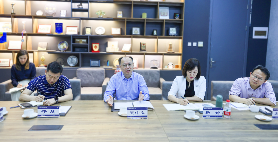 王中良对饶成进一行来校交流访问、共商合作发展表示欢迎。他表示,通过会谈,全面地了解到中铁十八局国际公司在海外的重大项目以及在国际市场中的担当与突出贡献。期待未来双方共同落实国家关于教育、科技、人才一体化发展要求,利用各自优势,共同推动科技创新与高层次高技能人才培育,创新“项目+团队”合作模式,建立常态化科研攻关联络机制,共建共享高水平科研成果,充分发挥校企协同效应,促进企业技术需求与教师科技成果的有机融合,积极探索高等教育与行业实践深度协同融合育人的新路径,以高质量人才培养助力校企合作共赢。