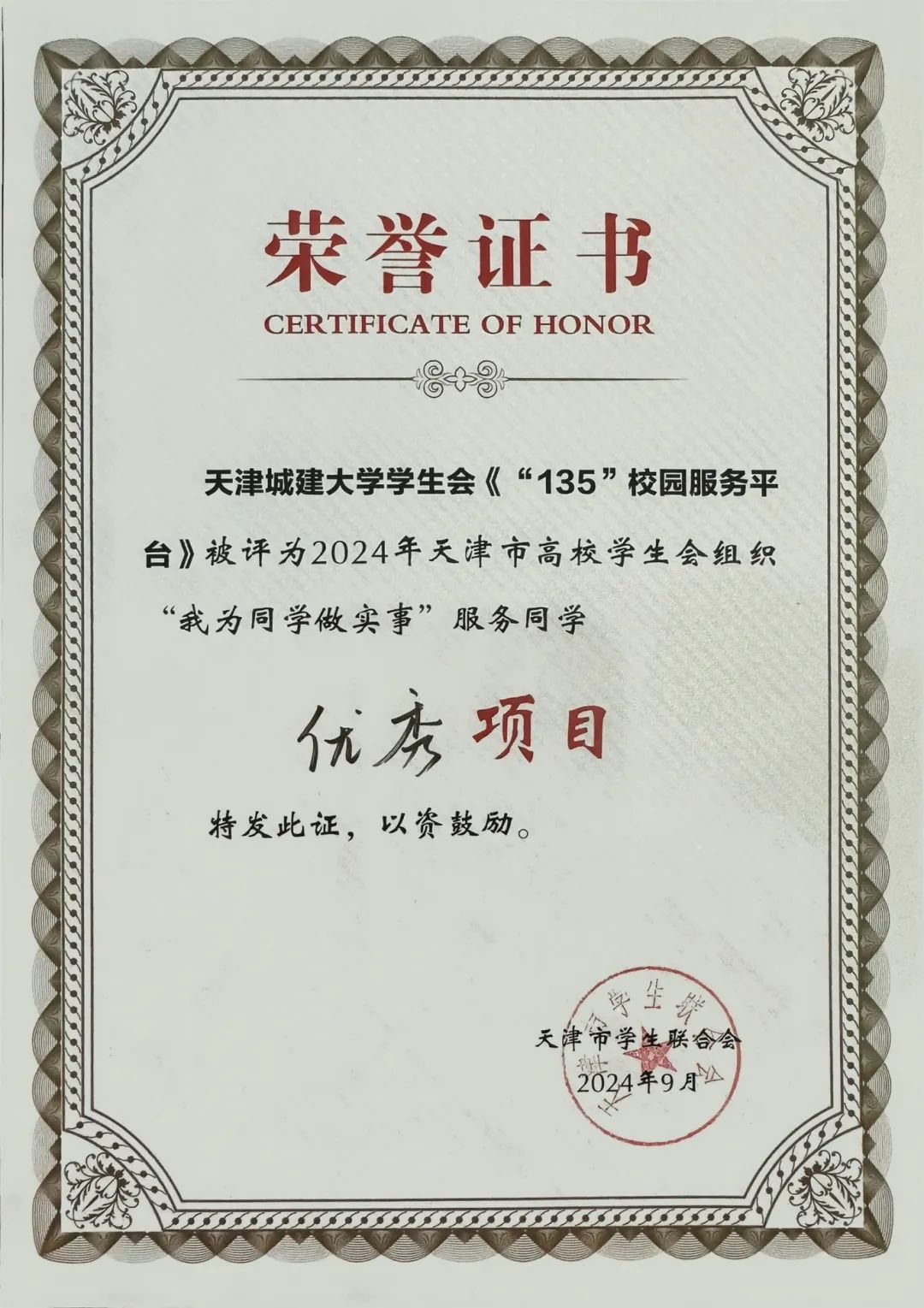 近日,由团市委指导、天津市学生联合会组织的“我为同学做实事”服务同学品牌项目市级终评展示活动落下帷幕,Beat365官网学生会“‘135’校园服务平台”项目荣获“优秀项目”。