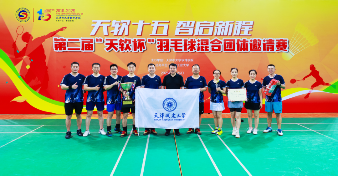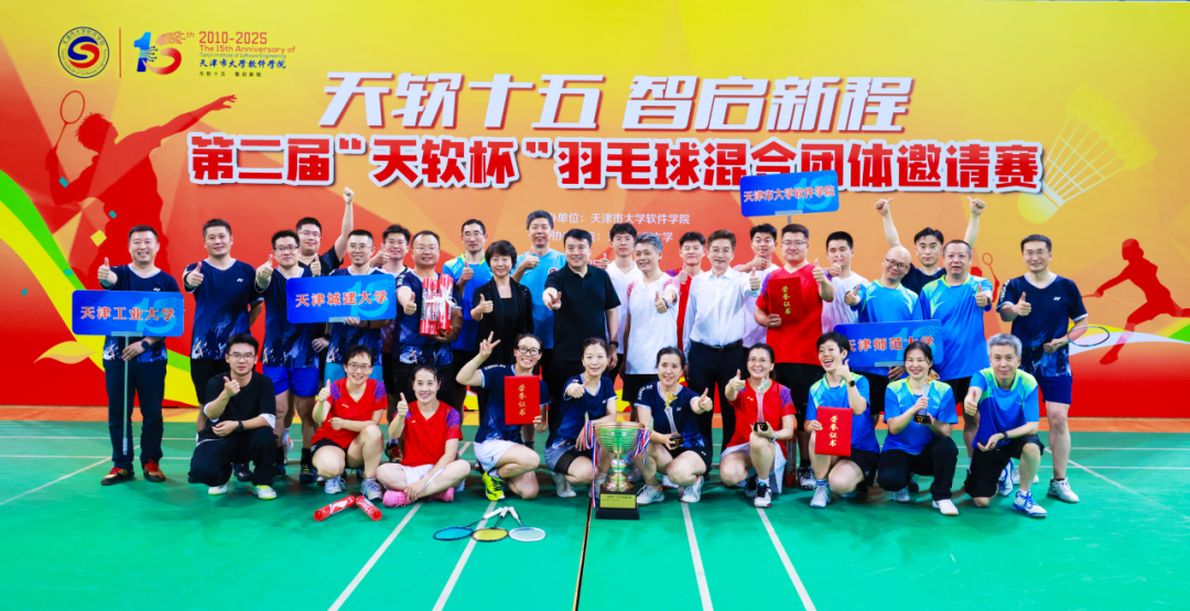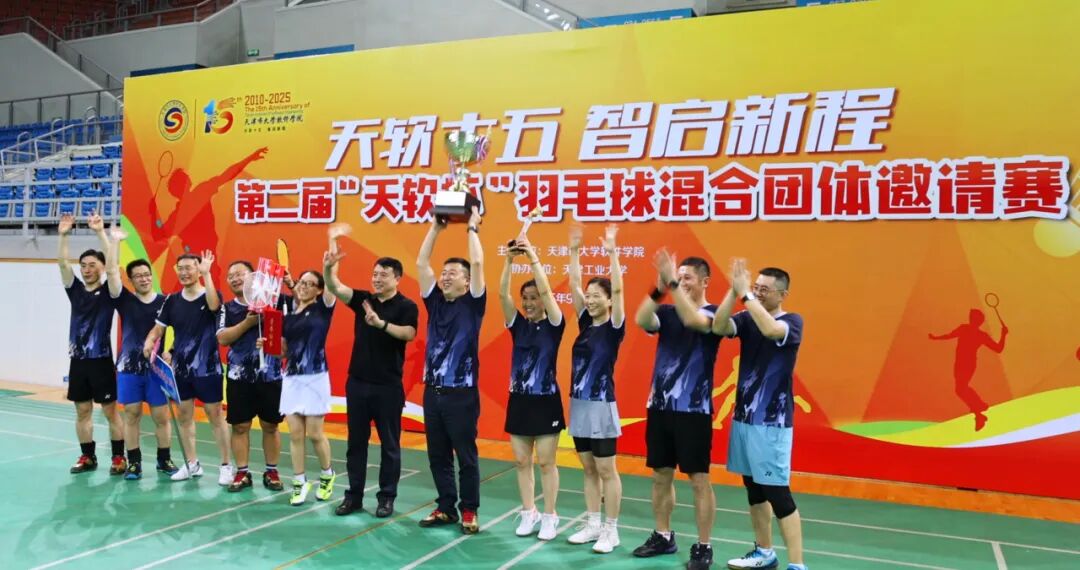 9月26日,Beat365官网教职工羽毛球代表队参加第二届“天软杯”羽毛球邀请赛,与天津工业大学、天津科技大学、天津师范大学、天津市大学软件学院等多所高校的参赛队伍同台竞技、共展风采,经过激烈比拼,最终斩获邀请赛冠军。
