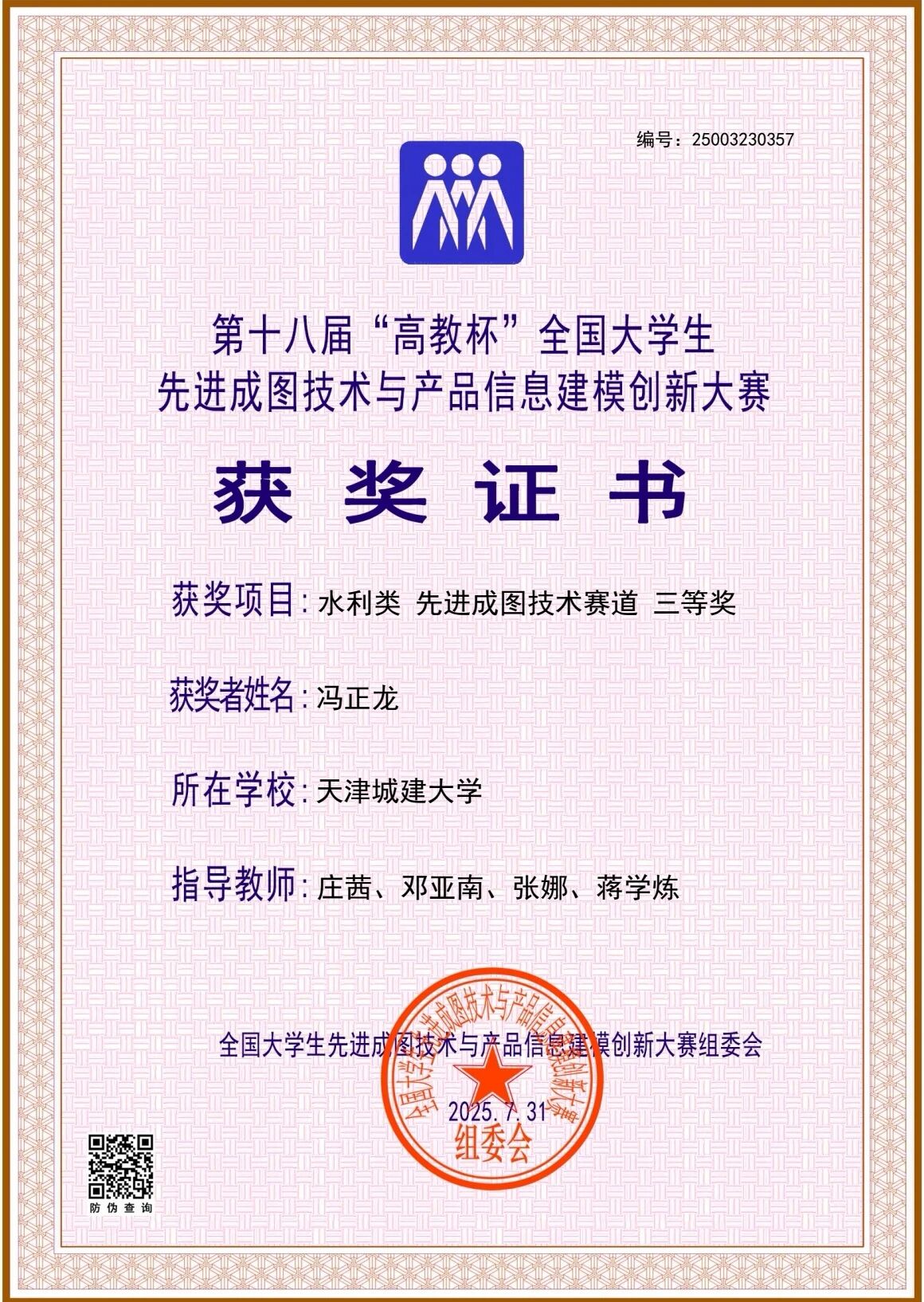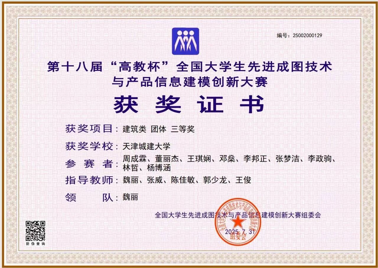 近日,第十八届“高教杯”全国大学生先进成图技术与产品信息建模创新大赛总决赛在太原理工大学成功举办。Beat365官网为分赛场之一。天城大学子勇创佳绩,荣获建筑类团体三等奖,建筑类个人三等奖3项,水利类个人三等奖1项。